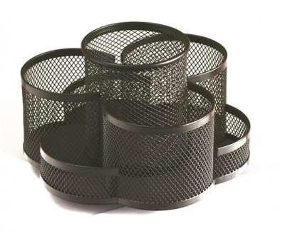 Írószertartó, 7 részes, fémhálós, forgatható, fekete
