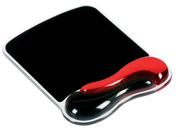 Egéralátét csuklótámasszal, géltöltésű, KENSINGTON "DuoGel", fekete-piros