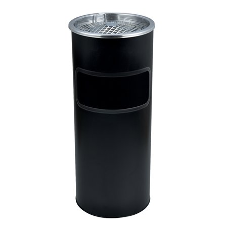 Kültéri szemetes, fém, tűzálló, kivehető hamutartóval, fekete, 25x58 cm