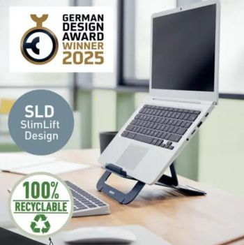 Maximalizálja a kényelmet a munkahelyén a LEITZ „Ergo” alumínium, állítható magasságú laptopállvánnyal. Válasszon az 5 különböző magassági beállítás közül, hogy laptopja képernyőjét ergonomikus és kényelmes látószögbe emelje. A SlimLift Design (SLD) kialakításnak és pamut tárolózsebnek köszönhetően ez az állvány könnyen elfér egy táskában, hogy útközben is használhassa.