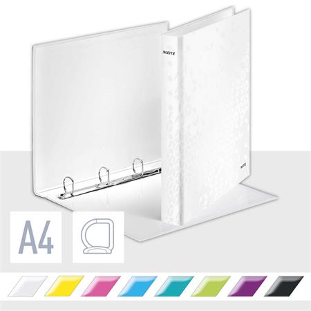 Gyűrűs könyv, 4 gyűrű, D alakú, 40 mm, A4 Maxi, karton, LEITZ "Wow", fehér