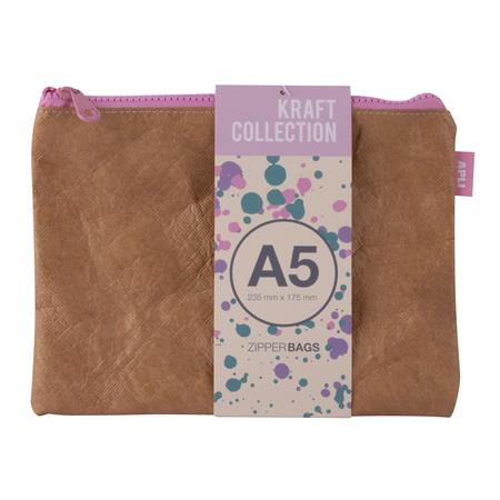 Rendszerező tasak, cipzáras, bőrhatású textúra, műanyag, A5, APLI "Kraft", vegyes színű cipzár