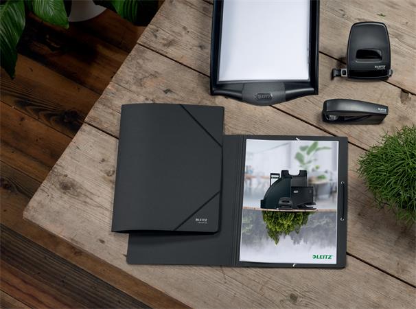 Gumis mappa, karton, A4, LEITZ "Recycle", fekete