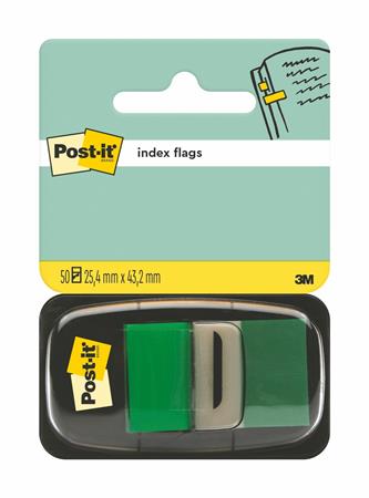 Jelölőcímke, műanyag, 50 lap, 25x43 mm, 3M POSTIT, zöld