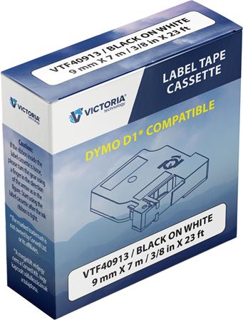 Feliratozógép szalag, 9 mm x 7 m, VICTORIA TECHNOLOGY, fehér-feketeAlapítvány támogatás 2 Ft