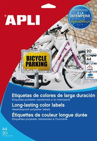 KezdőlapIrodaszerekIrodai papíráruEtikettekEtikett, 210x297 mm, poliészter, időjárásálló, APLI, sárga, 20 etikett/csomag
