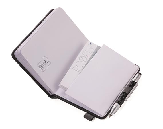 Jegyzetfüzet, exkluzív, A7, pontrácsos, 64 lap, keményfedeles, fekete golyóstollal, TROIKA "Lilipad+Liliput", fekete