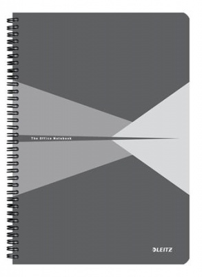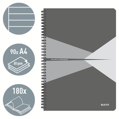 Spirálfüzet, A4, vonalas, 90 lap, laminált karton borító, LEITZ "Office", szürke