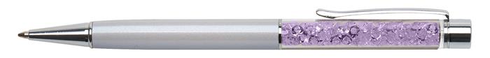 Golyóstoll, krémfehér, felül orgona lila SWAROVSKI® kristállyal töltve, 14 cm, ART CRYSTELLA®