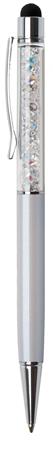 Golyóstoll, krémfehér, felül színjátszós fehér SWAROVSKI® kristállyal töltve, érintővel, 14 cm, ART CRYSTELLA®