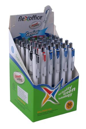 KezdőlapIrodaszerekÍrószerekGolyóstollakGolyóstoll, 0,4 mm, nyomógombos, vegyes színű tolltest, FLEXOFFICE "Senior", kék