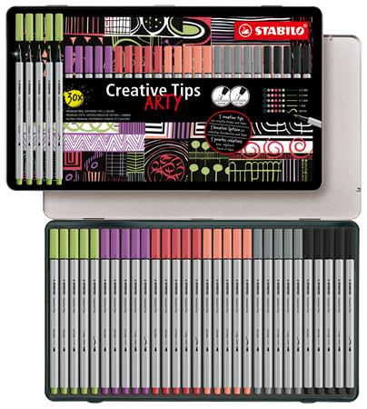 Tűfilc készlet, fém doboz, STABILO "Creative Tips ARTY", 6 különböző pasztell szín, 5 különböző vastagság