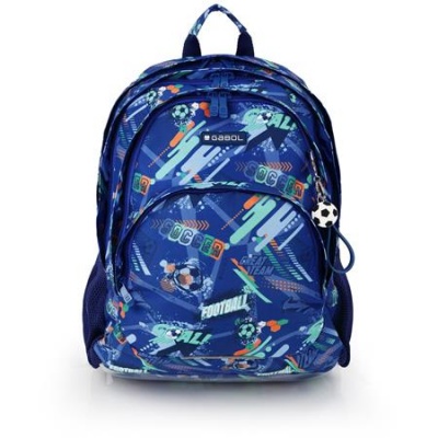 Hátizsák, iskolatáska, cipzáras, GABOL "Crew", kék, foci