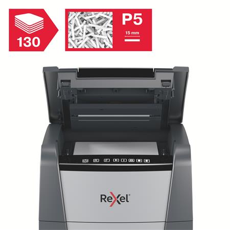 Iratmegsemmisítő, mikrokonfetti, 130 lap, REXEL, "Optimum AutoFeed+ 130M"