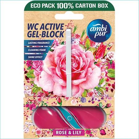 Az Ambi Pur WC tisztító blokk hatékony WC-tisztítószer. Eltávolítja a szennyeződéseket és megakadályozza a vízkő és lerakódások kialakulását. A kellemes illat sokáig frissen tartja a WC-t, a hatékony formula pedig minden öblítéssel higiénikus tisztaságot biztosít.