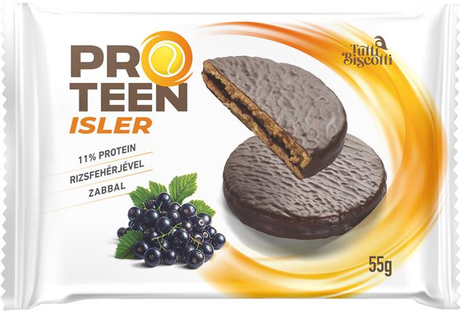 ProTeen Isler - Magas fehérjetartalmú linzertészta magas gyümölcstartalomú feketeribizli-lekvárral töltve, kakaós bevonóval.