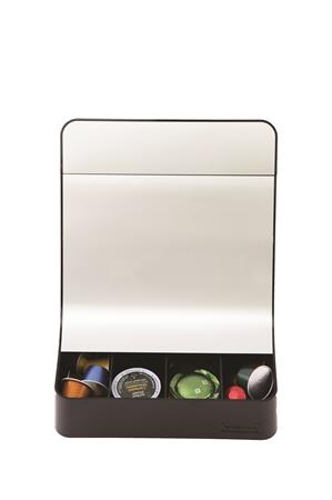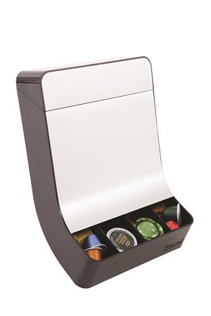 Elegáns és funkcionális, ez a 4 rekeszes kávékapszula tartó állomás billenthetőségének köszönhetően kényelmes és könnyű hozzáférést biztosít a tárolt termékekhez.