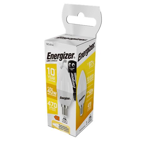 LED izzó, E14, gyertya, 4,9W (40W), 470lm, 3000K, ENERGIZER