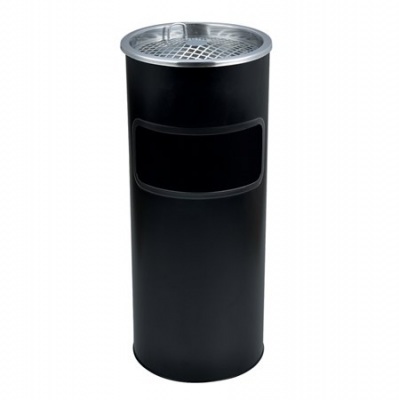 Kültéri szemetes, fém, tűzálló, kivehető hamutartóval, fekete, 25x58 cm