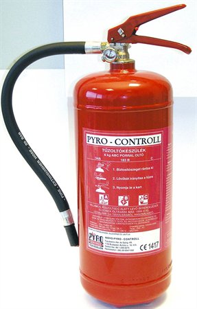 Európai szabványnak megfelelő porral oltó készülék.