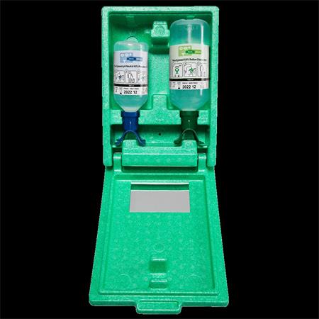 Az elsősegély szemkimosó flakon 1000 ml 0,9%-os steril nátrium-klorid oldatot tartalmaz. A pH Neutral flakon 500 ml 4,9%-os steril foszfát oldatot tartalmaz, amely gyorsan semlegesíti akár a koncentrált sav- vagy lúgtartalmú anyagokat, azok szembe kerülése esetén. Akár 50-szer hatékonyabb lehet, mint a tiszta víz. A folyadék foszfátokat tartalmaz, amelyek egyébként is jelen vannak az emberi testben.
