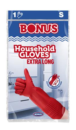 Gumikesztyű, háztartási, latex, extra hosszú, 38 cm, S méret, BONUS, piros